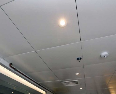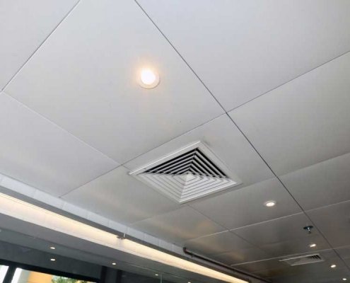 O Tile Clip-in Hunter Douglas é um forro modulado, removível, na dimensão de 625 x 625 mm (entre eixos), com sistema de perfis oclusos e que apresenta sistema de juntas secas bisotadas entre os painéis. Essa solução, por apresentar um sistema de fixação oculto, proporciona o aspecto de forro monolítico, com painéis removíveis independentemente. Os painéis podem ser lisos ou perfurados e, neste caso, quando agregados a manta termoacústica, contribuem com a equalização sonora do ambiente.
